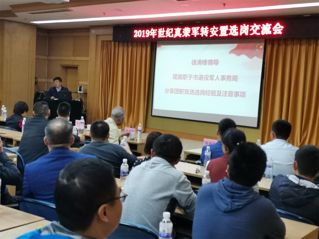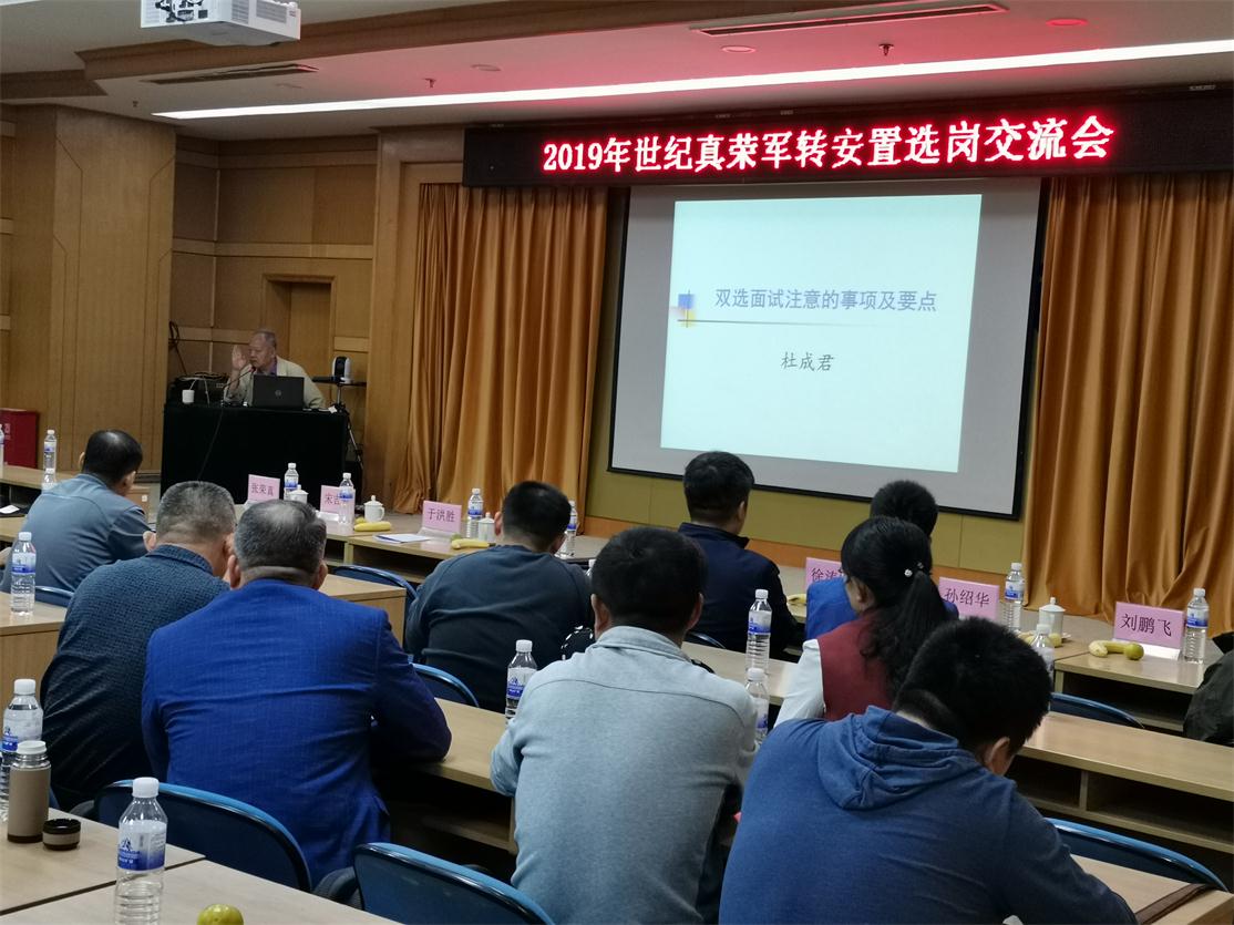2019年世紀真榮軍轉選崗經驗交流會于10月13日上午在青島疾控中心三樓會議廳舉行,真榮專邀院校知名教授、歷年優秀轉業領導蒞臨現場,共同分享交流近年來崗位情況、選崗經驗與選崗后的一些崗位信息,200余名軍轉干部到場參加。