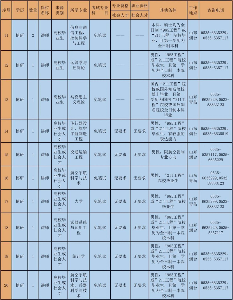 海軍航空大學2020年文職人員公開招考預告