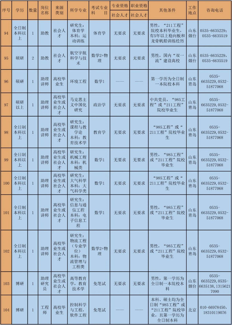 3. 資格條件。具有招考崗位要求的專業技術資格和職業資格。除法律法規明確規定的外,報考初級專業技術崗位,以及博士研究生報考中級專業技術崗位的,不作資格條件要求。