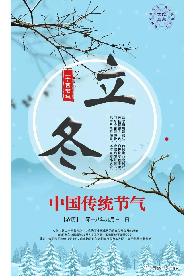 中國又把立冬作為冬季的開始。