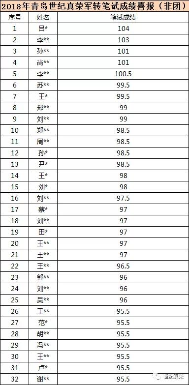 2018年青島市副團職狀元及前三甲均花落世紀真榮