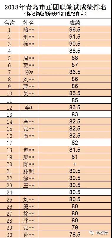 2018年青島市正團職狀元及前三甲均花落世紀真榮!