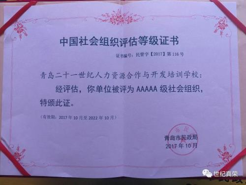 熱烈祝賀我校在青島市社會組織等級評估中榮獲“AAAAA級社會組織”榮譽稱號!
