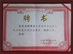 2008-2012年度被聘請為青島市市北區人民法院執法、執紀監督員、青島市工商業聯合會(總商會)代表